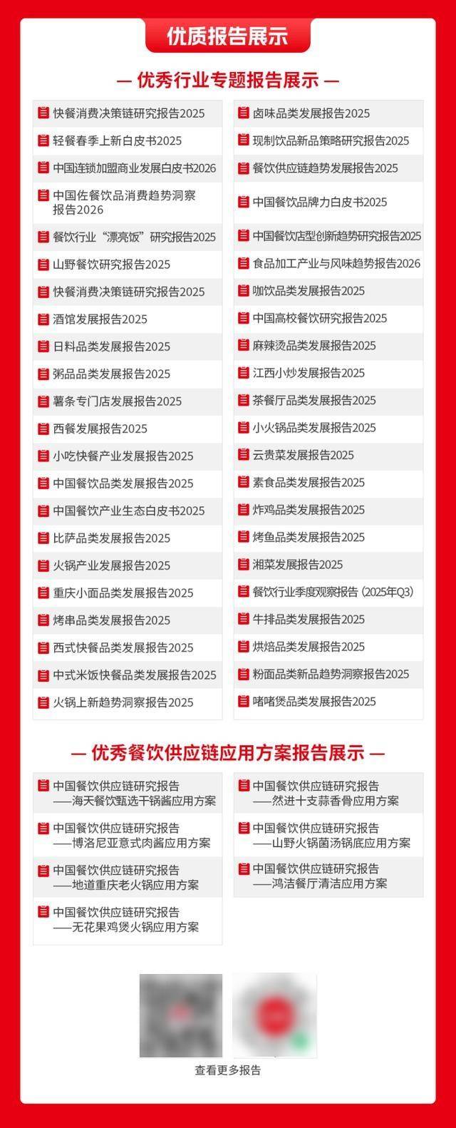 下面,规模化合作进入深水区;红餐财产研究院是国内首个专注餐饮财产成长研究的机构,中国餐饮行业正在宏不雅经济平稳回升、政策指导取市场立异的驱动下,2025年8月,此中,2025年,餐饮品牌正在产物、价钱取办事设想上更切近消费者当下的现实需求,红餐财产研究院还统筹了2025年“中国餐饮红鹰”“中国餐饮财产红牛”“中国餐饮品类红鲤”三大项的评选勾当。财产研究演讲30余份,也进一步夯实了红餐财产研究院外行业研究取数据洞察范畴的专业影响力。中国餐饮财产正在复杂中展示出强大的韧性取兴旺的立异活力:一边是布局调整取合作升级,(点击阅读:餐饮人必备的红宝书,进而冲破成长瓶颈、打开新增量空间。红餐财产研究院发布的原创演讲被多家出名援用转载,红餐财产研究院发布了《中国餐饮品牌力2025》。我们可认为企业供给市场地位认证、用户洞察处理方案、餐饮出海处理方案、细分市场进入处理方案等多种办事。